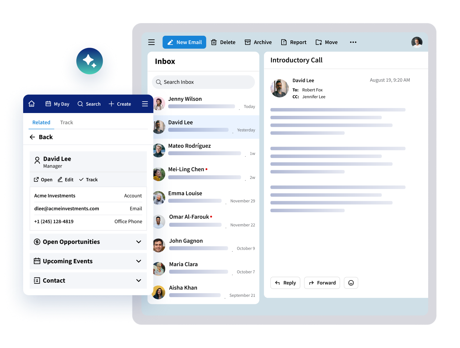 Capture relevant emails, contacts, and calendar data in your CRM to build a complete view of your customer, manage compliance, and empower your AI tools.