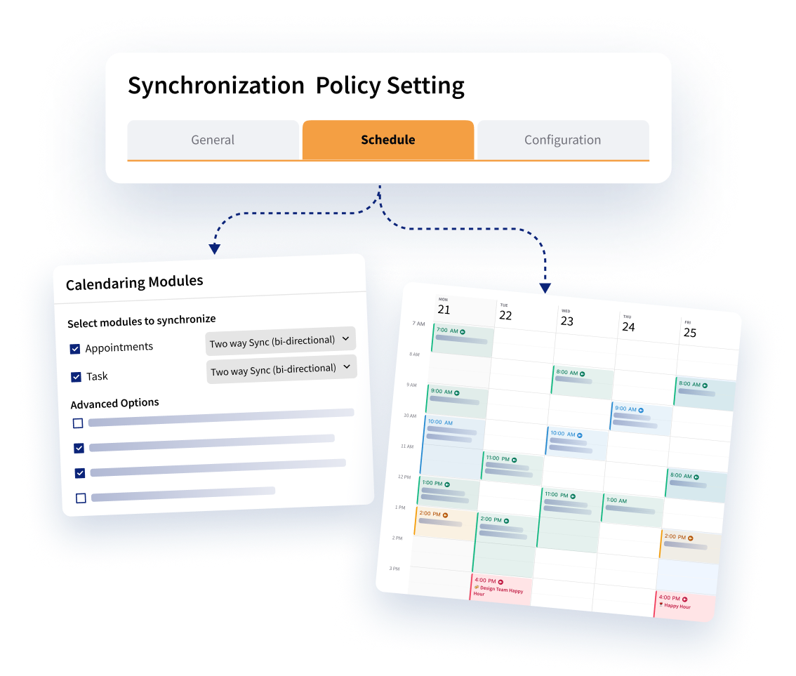 EAC cannot reliably sync changes to individual events in recurring series and lacks support for multi-calendar or delegated calendar setups, often resulting in incomplete or inconsistent CRM data. Designed for enterprise workflows, Riva’s calendar sync captures meaningful meeting data while supporting complex scheduling needs.