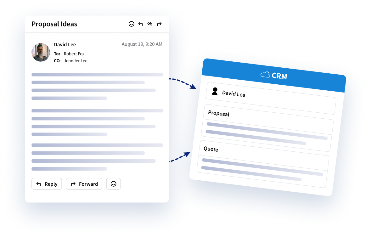 Pull proposals, meeting notes, case details, and more from emails and send them directly to your CRM, building insights and context for better decision-making.