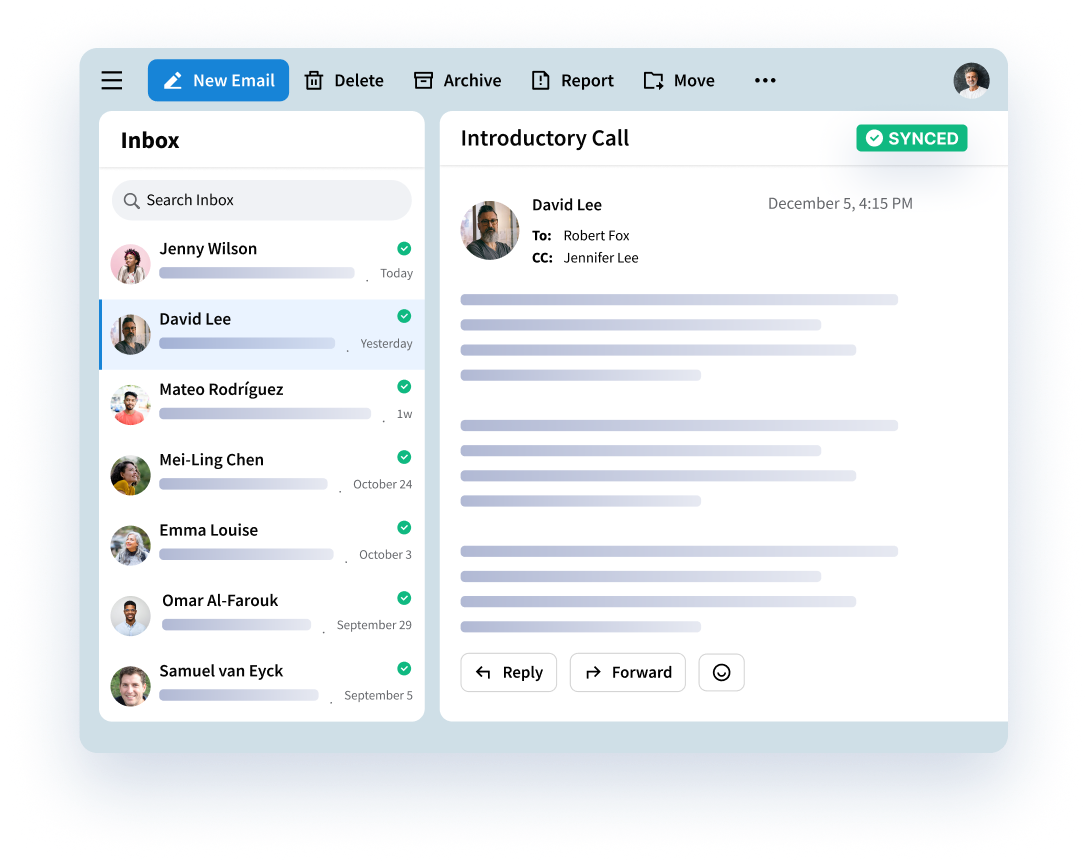 Inbound and outbound emails are written directly into your CRM in real time. No manual logging, just data exactly where you need it.