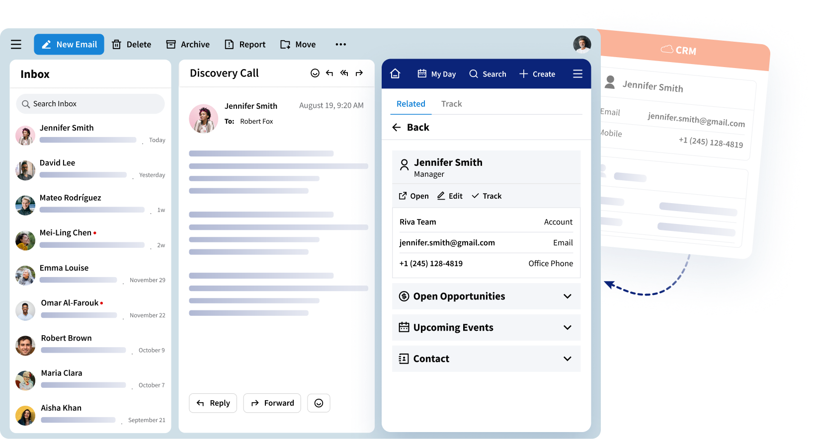 View the right contacts, accounts, and opportunities alongside your emails and meetings.