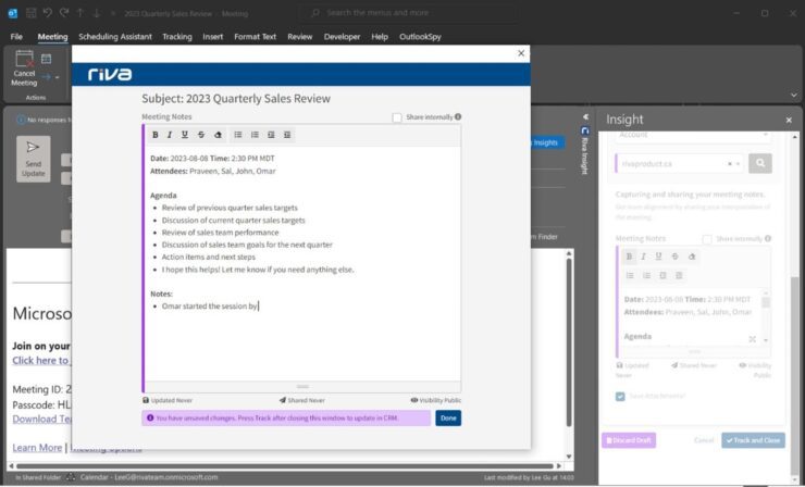 Not enough space to work on adding your meeting notes? Riva Insight now allows you to pop out your notes in a new, bigger window, making recording meeting information easier than ever.