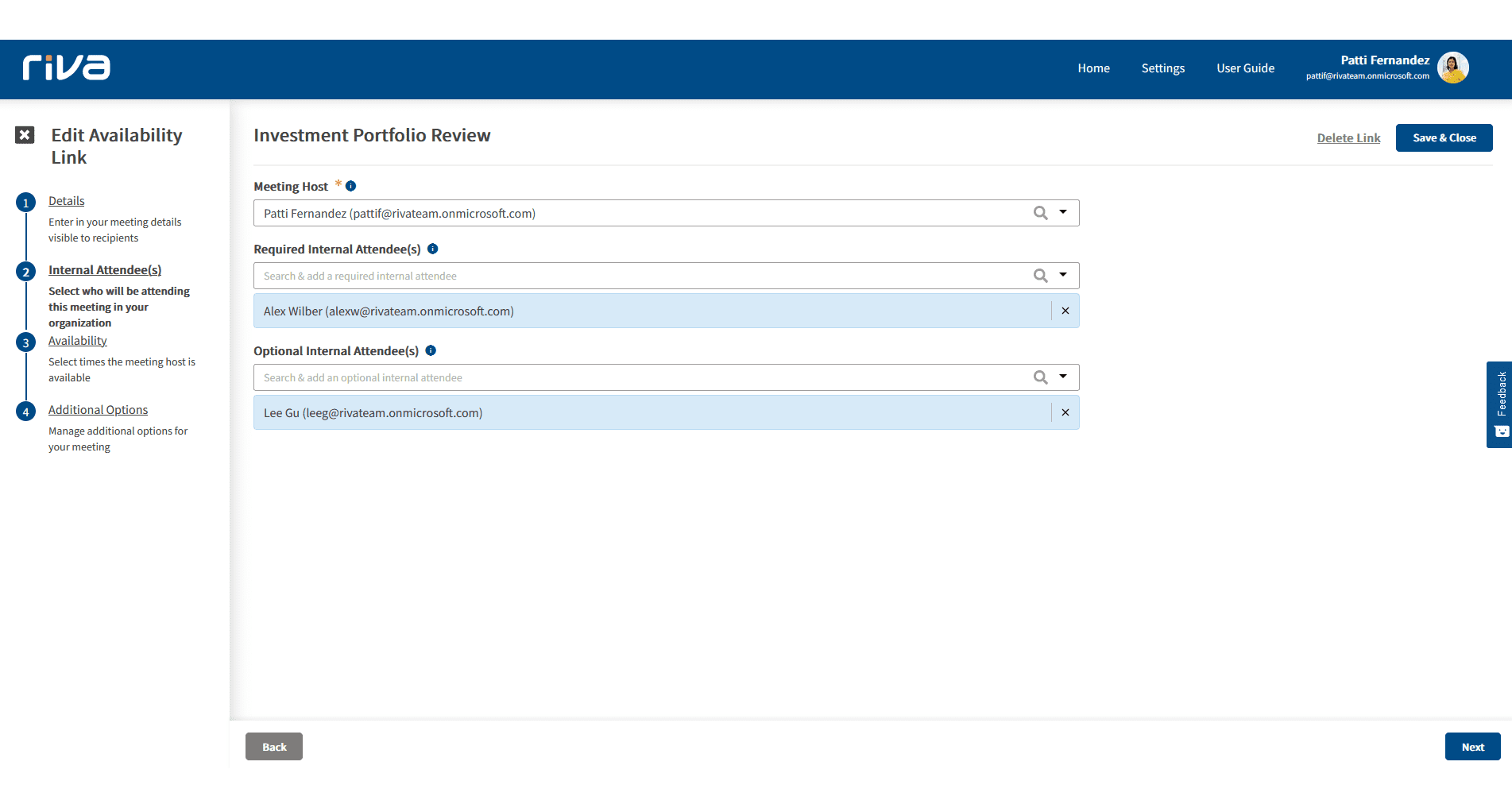 1. While creating a booking link, user can add additional internal attendee as required or optional.