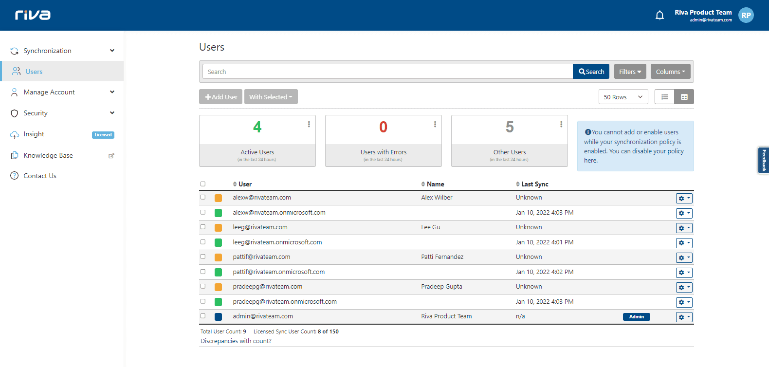 We know customers like you look for easier processes and reduced syncing downtime following a mailbox rename. Riva can now detect when a user email address change, automatically update the sync policy with the new mailbox, and remove the old one. You no longer need to reach out and wait on our team to manually do this process.