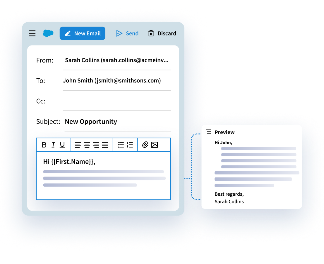 Send personalized one-to-many messages using CRM data without leaving your email client.